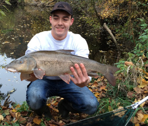 Steffen Eisenmann freut sich über seine Barbe, die statt eines Barsches den Twister nahm.