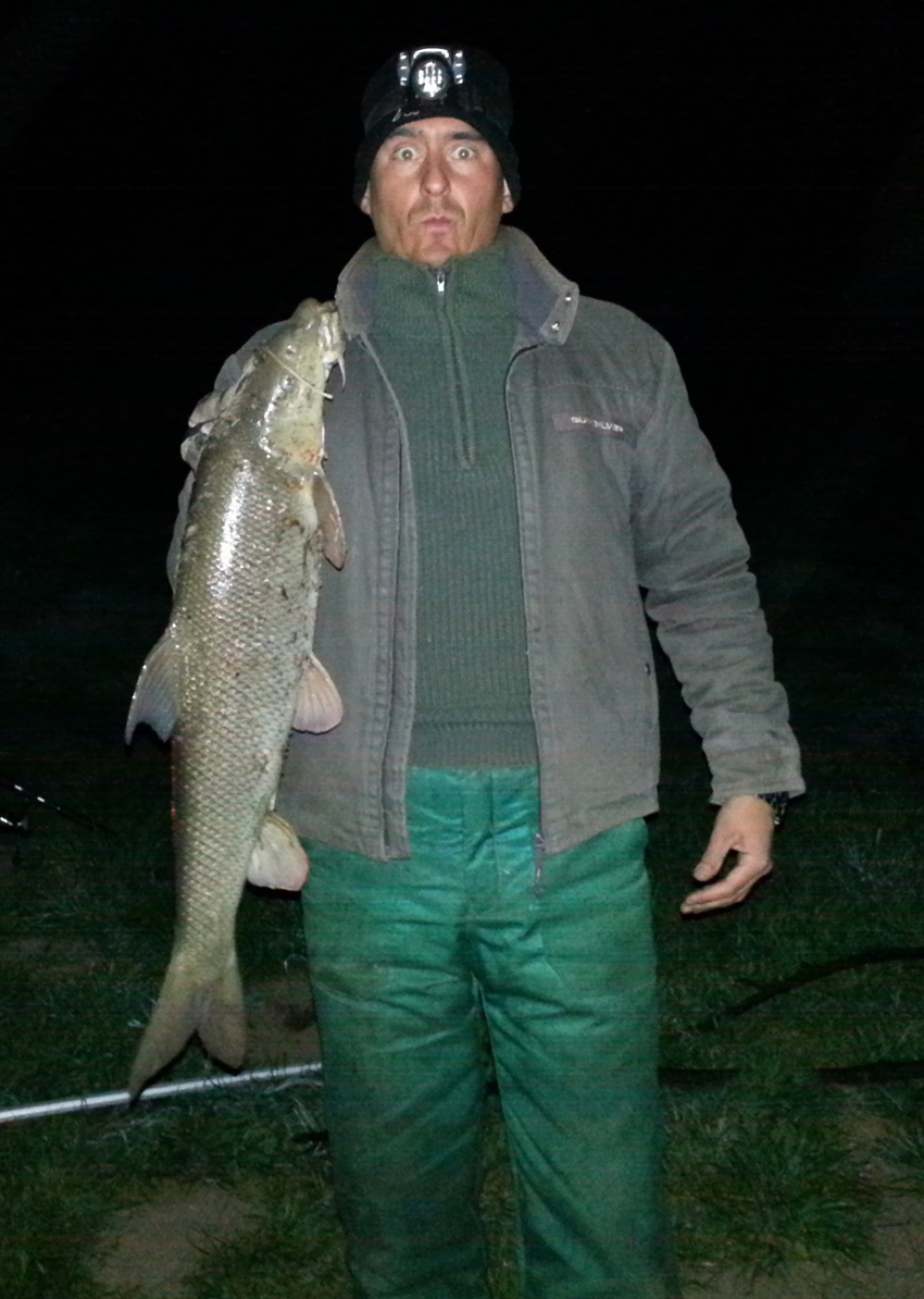 Bei einem Angelabend an der Neiße bei Forst, ging Ronny Stein eine dicke Barbe an den Haken. Der 76 Zentimeter lange Bartelträger hatte