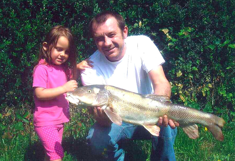 Schlimmer konnte ein Angeltag gar nicht beginnen. Arnold Linz wollte sich zuerst ein paar kleine Lauben als Zanderköder stippen, doch statt dessen gingen ihm nur zwei große Rotaugen zwischen 15 und 20 Zentimeter an den 20er Stipphaken. Nach dem zweiten Rotauge riss dann auch noch das Häkchen ab und Linz hatte keinen Ersatz dabei. Mit nur zwei Köderfischen fuhr der Angler danach mit dem Fahrrad die ihm bekannten Erfolgsstellen am Main bei Hallstadt ab, doch die waren alle von Kollegen besetzt. Was tun? An einer nur brusttiefen Stelle mit Kiesgrund stiegen mehrere Lauben und Linz beschloss, hier, an einem unbekannten Platz, sein Glück zu versuchen. Dazu köderte er das 15 Zentimeter lange Rotauge auf den großen Einzelhaken am 80 Zentimeter langen Geflechtvorfach (Whiplash Crystall in 0,06 Millimeter Durchmesser). Mit einem 80 Gramm Blei wurde der Köderfisch dann am Maingrund versenkt. Gegen 22 Uhr wurde ohne Vorwarnung die kräftige Feederrute aus dem Halter gerissen, und Linz musste einen gewaltigen Sprint hinlegen, um sie noch zu erwischen. Es folgte ein 25-minütiger Drill. Immer wieder wechselte der Fisch die Fluchtrichtung und Angler Linz musste immer wieder die Rollenbremse nachkorrigiern. Bis zu den Knien im Wasser stehend, weil Buschwerk am Ufer eine Landung behinderte. konnte er danach den Fisch, eine kräftige Barbe von 79 Zentimeter Länge landen.