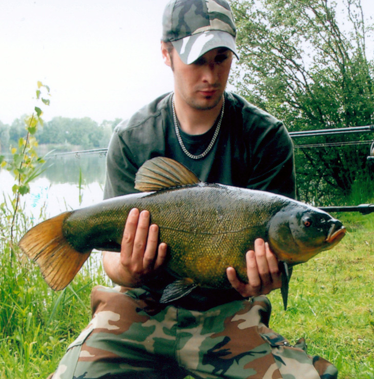 Allerdings ergab sich sein Fisch schon nach fünf Minuten der Kraft der 2,75-lb-Karpfenrute und der 0,31er Schnur. Mit Hilfe eines Kollegen konnte Springer dann eine riesige Schleie von 8 Pfund 450 Gramm keschern. Länge der Kapitalen: 62 Zentimeter.