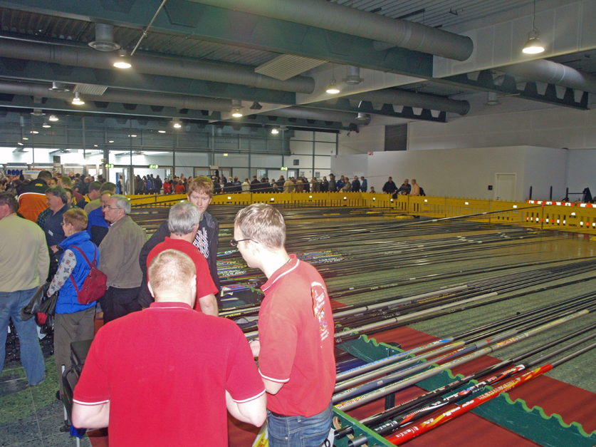 Als die Messe um 9 Uhr ihre Türen öffnete, drängten sich Massen von Anglern die Rolltreppe herauf ins erste Geschoss der Bremer Messehalle 4. Dort hatten 23 Firmen alles aufgebaut, was das Herz eines Friedfischanglers höher schlagen lässt. Mittelpunkt der Halle war der Kopfrutenstand: Wohl nirgendwo in Deutschland kann man ein so breites Sortiment der langen Stangen testen und vergleichen wie in Bremen. Jede namhafte Firma war vertreten und stellte ihre besten Produkte vor. Und viele Besucher nahmen auf den vor den Ruten aufgebauten Sitzkiepen Platz und ließen sich eingehend die Vorteile eines jeden Modells erklären.