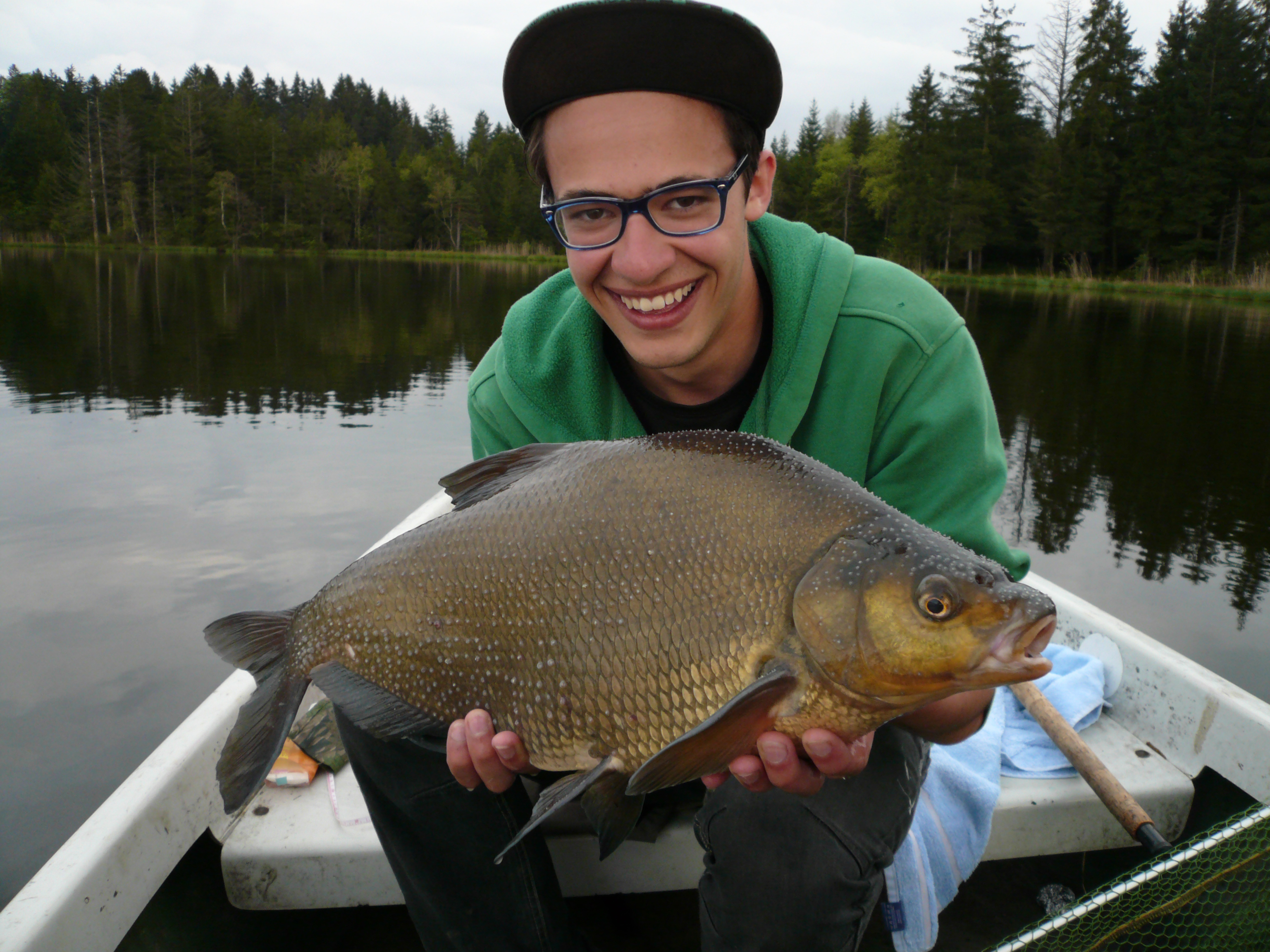 Am 9. Mai fischte ich zusammen mit einem Freund mit der Spinnrute am Schmutterweiher vom Boot auf Hecht. In den Abendstunden bekam ich einen heftigen Biss auf meinen Salmo-Perch-Wobbler an der Schilfkante. Doch statt eines Hechtes hing ein Riesenbrassen am Haken. Erst nach knapp 10 Minuten Drill mit meiner Blackbull-Rute von Cormoran konnte mein Freund den Fisch keschern. Er hatte eine Länge von 71 Zentimeter und ein Gewicht von 6,35 Kilogramm. Nach dem Wiegen wurde der Fisch, der voller Laichausschlag war, wieder zurückgesetzt. Und auch mit den Hechten klappte es an diesem Tag. Insgesamt fingen wir 17 Stück mit Längen zwischen 35 und 85 Zentimetern. Doch der Brassen wird wahrscheinlich zu den kapitalsten Fängen meiner 2013er Saison gehören.