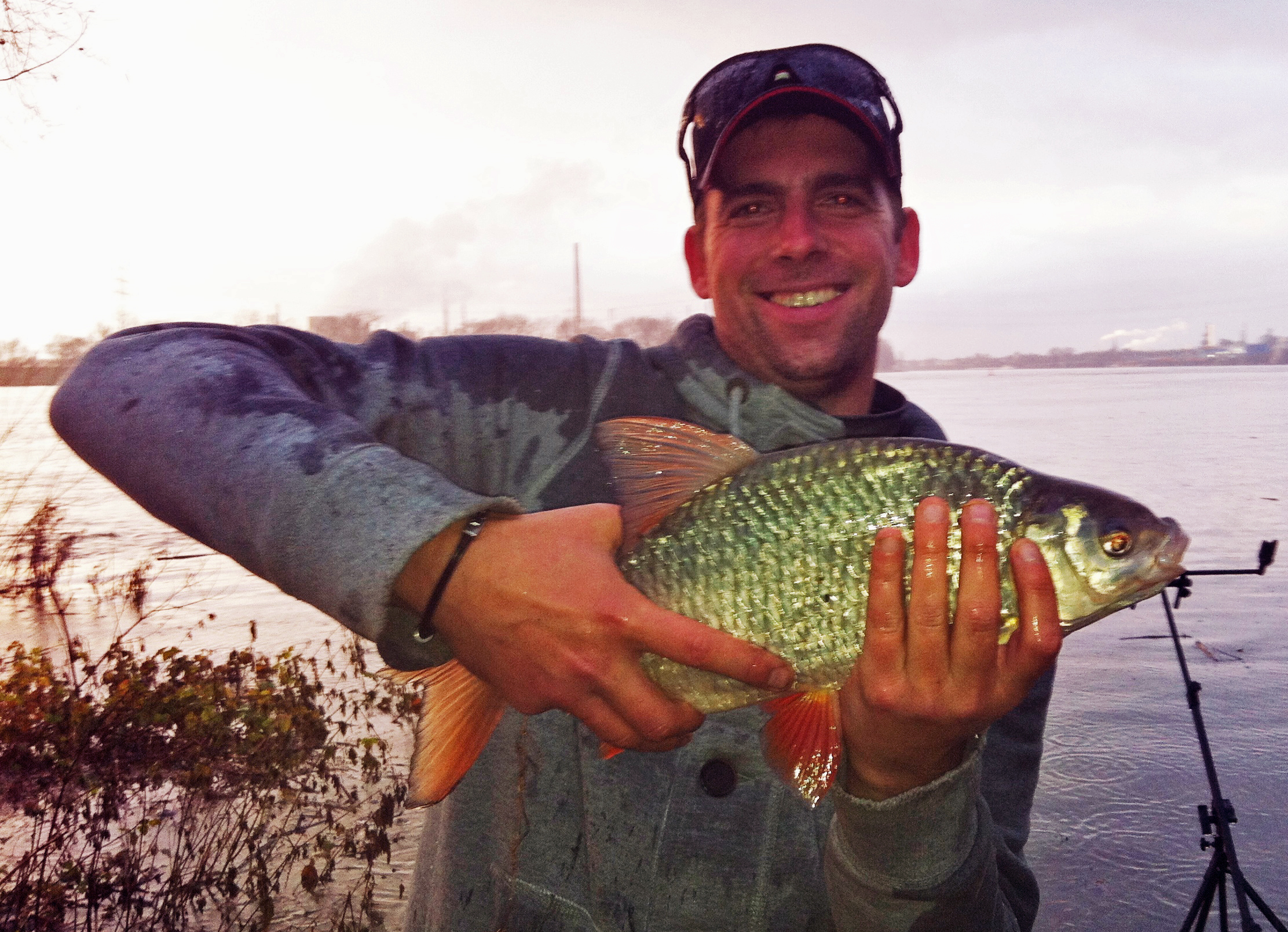 Im Rhein werden nicht nur regelmäßig stramme Raubfische gefangen. Für Friedfischangler ist ebenfalls stets ein großer Fang möglich. Dieses Glück hatte auch unser Leser Nico Wirtz mit einem kapitalen Rotauge.