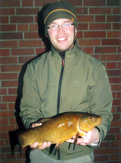 Schleie von vier Pfund 25 Gramm an den Haken.