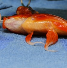 Bei Vollnarkose hielt über die Kiemen fließendes Wasser den Patienten am Leben. Nach Entfernung des Tumors ist George wohlauf und kann nach Meinung der Ärzte weitere 20 Jahre leben. K.K.