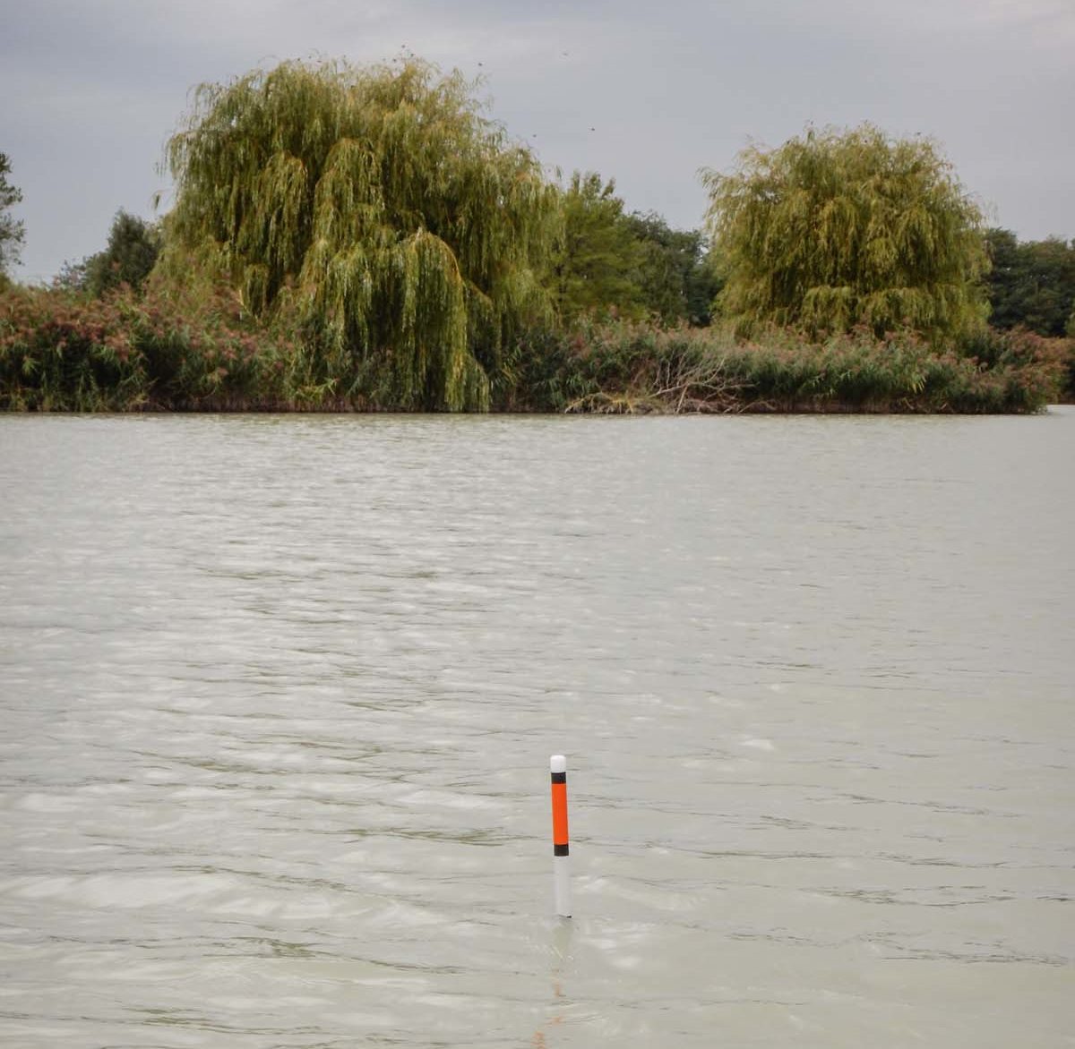 Wurde eine vielversprechende Stelle gefunden, setzt man eine Stabboje ins Wasser. Diese besteht aus einer langen Stange mit flexibel befestigtem Gewicht am Ende. Alternativ kann man auch Markerbojen (auch H-Marker genannt) verwenden. Allerdings haben H-Marker den Nachteil, dass ein gehakter Karpfen in die Schnur schwimmen und sich darin verwickeln kann.