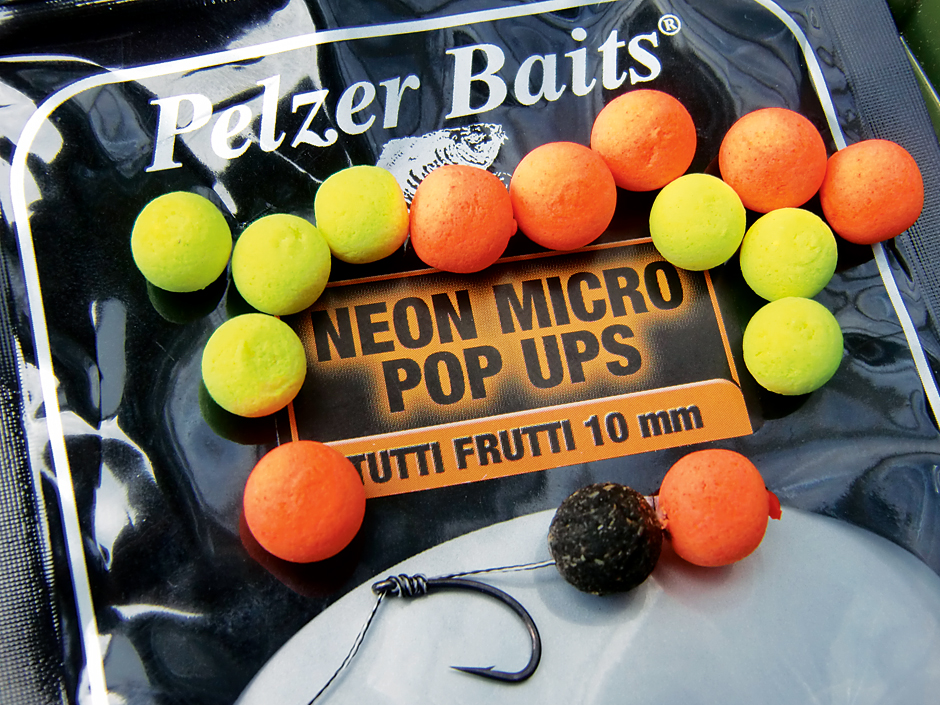 Beim Angeln mit Mini-Boilies muss alles etwas feiner ausfallen. Eine 10 Millimeter-Kugel und ein 2er Haken passen nicht zusammen. Ein Haken der Größe 8 oder 10 ist deutlich besser geeignet. Man kann natürlich mit einem Mini-Boilie am Haar angeln. Gerne ziehe ich auch zwei kleine Kugeln auf. Seit einiger Zeit sind auch Mini-Pop Ups in fluoreszierenden Farben erhältlich. Mit einem Schneemann, bestehend aus einem sinkenden und einem hellen, auftreibenden Boilie kann man farbliche Akzente setzen und für Aufmerksamkeit bei den Karpfen sorgen. Im Gegensatz zu größeren Boilies lassen sich die kleinen Kugeln nicht mit dem Wurfrohr anfüttern. Aber es gibt dennoch mehrere Möglichkeiten, um sie an den Futterplatz zu bekommen: Mit der Futterschaufel auf kürzere Distanz oder mit der Rakete auf weitere Entfernung. Beim Füttern mit der Rakete sollte man allerdings etwas mehr Zeit einplanen als gewöhnlich. Denn es dauert deutlich länger, ein Kilo kleine Boilies anzufüttern als die gleiche Menge Kugeln in Standardgröße. Ambitionierte Karpfenangler können den Laderaum ihres Futterbootes mit den Minis befüllen und sie punktgenau an der gewünschten Stelle absetzen.