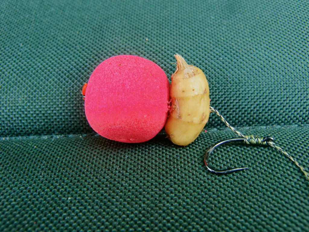 Wer gerne mit Ködern und Köderpräsentationen experimentiert, dem kann eine Kombination aus fluoreszierendem Pop Up-Boilie und Tigernuss weiterhelfen. Unter Wasser ist dieser Köder ein echter Blickfang. Zieht man dieses Duo aufs Vorfach, bekommt man häufig schon nach kurzer Zeit den ersten Biss. Aber Vorsicht: die schwimmenden Boilies in den grellen Farben funktionieren nur dort sehr gut, wo sie nicht häufig zum Einsatz kommen. Sollte an Eurem Gewässer viele Angler mit diesen Ködern ihr Glück versuchen, können Ihr sie getrost zu Hause lassen. Dann schrecken sie die Fische eher ab, als sie zum Anbiss zu verleiten. Wer häufiger auf Tigernüsse und Tigernussstücke setzt, wird oft besser fangen als Angler, die es ausschließlich mit den gekochten Teigkugeln versuchen.
