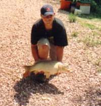 Der Karpfenmarathon Es war ein warmer Sommertag. Nach der Platzlosung, verzog ich mich unzufrieden unter einen Schattigen Baum. Ich packte langsam und leise meine Sachen aus. Beim Auspacken hielt ich schon einmal Ausschau nach einem Platz, zu dem ich meine Angeln auswerfen könnte. Der große Baum wirf nicht nur auf mich einen Schatten, sondern auch auf ein Teil des Weihers. Auf der Grenze des Schatten und des Wasser sah ich abwechselnd von verschieden Stellen Luftblasen aufkommen. Gespannt mit der Hoffnung, dass ich einen Karpfenschwarm in Sicht habe, habe ich die Angeln fertig gemacht. Auf jede Angel ein 25 gr. gezogen und auf die Boiliehaken ein Frolic gespickt. Nun habe ich dorthin geworfen und mein Tarnschirm aufgespannt. Nach einer guten Stunde, rollte sich die 0,35 Schnur von meiner Rolle. Ich schlug sanft an, siehe da es zeigte Widerstand. Sofort war es klar, dass es ein Karpfen sei. Nach 5 min. Drill bekam ich ihn zu Gesicht. Der schöne prachtvolle Schuppenkarpfen, von ca. 10 Pfund war gelandet. Gleich haben wir ein Foto geschossen und ihn gewogen. Als er in der Fangliste eingetragen war, lies ich ihn wieder frei. Am Abend hatte ich wieder einen Biss. Es war ein 18 Pfund Graskarpfen. Als mein Kollege ihn Keschertee zappelte er sehr. Kaum war er im Kescher war er wieder abgerissen und entflohen. Naja da kann man nichts machen. Das war ein Angeltag wie jeder! Es war nicht mein größter Karpfen, habe mit der Zeit schon größere gefangen. Ich gehe bald nach Mecklenburg-Vorpommern angeln. Vielleicht schicke ich wieder einen Bericht. Bis dann, Euer Angelfreund,- Petri Heil!