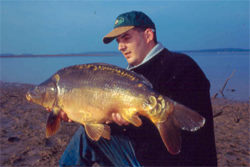 Auto und Anhänger gepackt und auf gings, der Trip zum Orient konnte beginnen. Auf der Fahrt beschlossen wir, das wir doch einen kleinen Abstecher zum Der machen könnten, um zu sehen was dort los ist. Am Der angekommen, stellten wir fest, das dort keine Angler waren und so fuhren wir nach einem kurzem Aufenthalt weiter. Gegen Mittag erreichten wir den Orient. Am See waren 3 Gruppen Karpfenangler, 6 Holländer, 3 Engländer und 2 Engländer. Das Wetter dort war wie im Hochsommer, die Sonne schien mit über 20 Grad auf uns herab und das Wasser war glatt wie ein Kinderpopo. Bei diesem Wetter trübte sich unsere gute Laune, da dies nicht unbedingt die besten Voraussetzungen zum Angeln waren. Ein Gespräch mit den Holländern trübte unsere Laune noch mehr, da diese uns erzählten, das sie seid knapp zwei Wochen keinen Fisch gefangen hatten und deshalb in zwei Tagen die Heimreise antreten wollen. Trotzdem besorgten wir uns unsere Angelkarten und begangen unser Tackle mit zwei Booten an den zuvor ausgesuchten Angelplatz zu bringen. Der Täglich fallende Wasserspiegel ( ca. 10 – 15 cm am Tag ) verursachte, das die gesamte Uferregion ein riesiges Meer aus Schlamm war und uns das Leben sehr erschwerte. Nach ca. 3 Stunden war dann aber das ganze Tackle am Platz und wir konnten mit dem Aufbau unseres Camps und dem Ausloten der Angelplätze beginnen. Die Landzunge, die wir uns zuvor ausgesucht hatten war Natürlich auch ein großes Meer mit Schlammigem Untergrund, so das wir erst einmal das gesamte Camp mit Folie auslegen mußten um dann dort unsere Zelte aufbauen und das Tackle ablegen zu können. Bevor wir unser Camp aufbauen wollten sollten aber erst die Angelplätze ausgelotet werden. Als wir unser Echolot startklar machen wollten, stellten wir fest das wir ein Adapterstück im Auto vergessen hatten. Da im Auto auch noch mehr Folie war, die wir durchaus noch gebrauchen würden, machte ich mich mit Stefan auf dem Weg zum Auto, das wir ca. einen Kilometer hinter uns in einem Waldstück geparkt hatten, um die noch fehlenden Dinge zu holen. Dirk begann schonmal mit dem Aufbau des Camps. Am Auto angekommen, stellten wir fest, das wir den Adapter wohl zu Hause vergessen hatten. So machten wir uns dann mit der Folie wieder auf den zum Camp. Da uns der Weg zu lang, beschlossen wir, eine Abkürzung zu gehen. Das war wohl die schlechteste Idee, die wir haben konnten. Mir blieb es leider nicht erspart, das ich bis zu den Hüften im Schlamm stecken blieb und mich nicht mehr selber befreien konnte. So mußte Stefan erst einmal zurück zum Waldstück um von dort einen langen Ast zu holen um mich so aus meiner Miesere zu befreien. Nach großen Anstrengungen gelang es Stefan mich aus dem Schlamm zu ziehen, nur meine Watstiefel steckten immer noch im Schlamm so das ich mich flach auf den Boden legen mußt um meine Watstiefel mit den Händen ausbuddeln mußte. Nach 45 Minütigem Fußmarsch, mit 30 Kilo Schlamm an den Sachen, erreichten wir dann das Camp, das zum Teil schon von Dirk aufgebaut war. Da wir nun unser Echolot nicht benutzen konnten, mußten wir die Angelstellen mit der Rute ausloten. Das nahm natürlich sehr viel Zeit in Anspruch. Nachdem aber die Plätze ausgelotet waren, die Montagen an Ort und Stelle lagen und das Camp aufgebaut war, setzten wir uns zum Essen zusammen. Danach vielen wir alle tot auf die liege und erwarteten den ersten Run. Der aber in der ersten und auch am zweiten Tag ausblieb. In der Dritten Nacht war es dann endlich soweit, in den Frühen Morgenstunden machte sich einer meiner Delkims lautstark bemerkbar. Watstiefel an, anhieb setzen, rein ins Boot und dem Fisch hinterher. Nach ca.10 minütigem Rudern und kurzem Drill, hatte ich einen 16 Pfünder Spiegel im Unterfangkescher. Er war zwar kein Riese, aber ich freue mich über jeden gefangenen Karpfen. Nach dem Wiegen und einem schönen Foto, ließ ich ihn wieder in sein Element zurück. Nun stiege unsere bis dahin getrübte Stimmung, da es immerhin der erste Karpfen seid über zwei Wochen war, wie uns die Holländer erzählten, die an diesem Tag ihre Heimreise antraten. Dieser Karpfen war dann aber mein erster und letzter auf dem Orient Trip. Dirk hatte nur einen Aussteiger zu verbuchen. Am letzten Tag konnte aber Stefan noch einen 18 Pfünder überlisten. Trotz des geringen Fangerfolges und der Schlammassen durch die wir uns täglich kämpfen mußten haben wir doch eine schöne Woche gehabt. Bericht von Holger Mayer