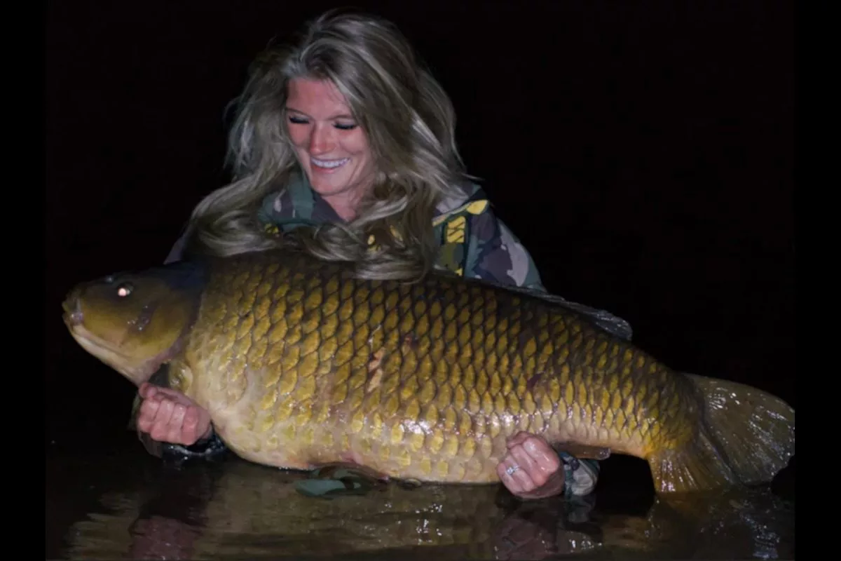 „Es war einfach unglaublich, der Fisch war halb so groß wie ich“, freut sich die Anglerin über den Karpfen der unter dem Namen „Big Common“ (etwa „Der große Schuppi“) bekannt war.