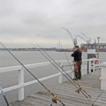 Fabian setzt auch beim Plattfischangeln am Kanal auf Brandungsruten – Modelle bis 4,20 m mit einem Wurfgewicht bis 225 g. Schwere Karpfen– oder Heavy Feeder-Ruten erfüllen aber auch ihren Job. Es ist auf jeden Fall erforderlich, dass die Montage am Platz liegen bleibt, um die standorttreuen Plattfische fangen zu können. Damit die langen Brandungsruten auch bei Wind und Wetter stabil und sicher am Wasser stehen, benutzt er ein herkömmliches Brandungsdreibein. Alternativ kann man die Ruten am dortigen Geländer mit einem Reling-Band, wie man es beim Kutterangeln verwendet, befestigen.