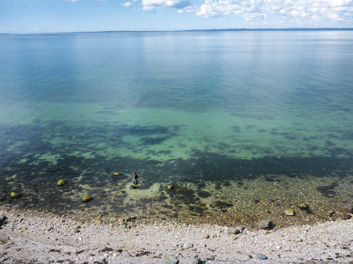 Im Flachwasser wird der Meerforellenblinker oberflächennah geführt, um Hänger am Gewässergrund zu vermeiden.
