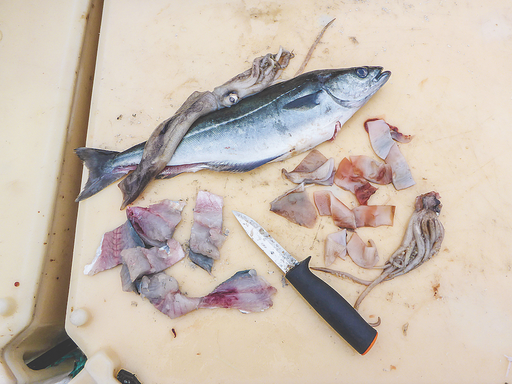 Tintenfische sind fantastische Naturköder. Das zähe Fleisch hält super gut auf dem Haken und übersteht ein paar Anfasser problemlos.