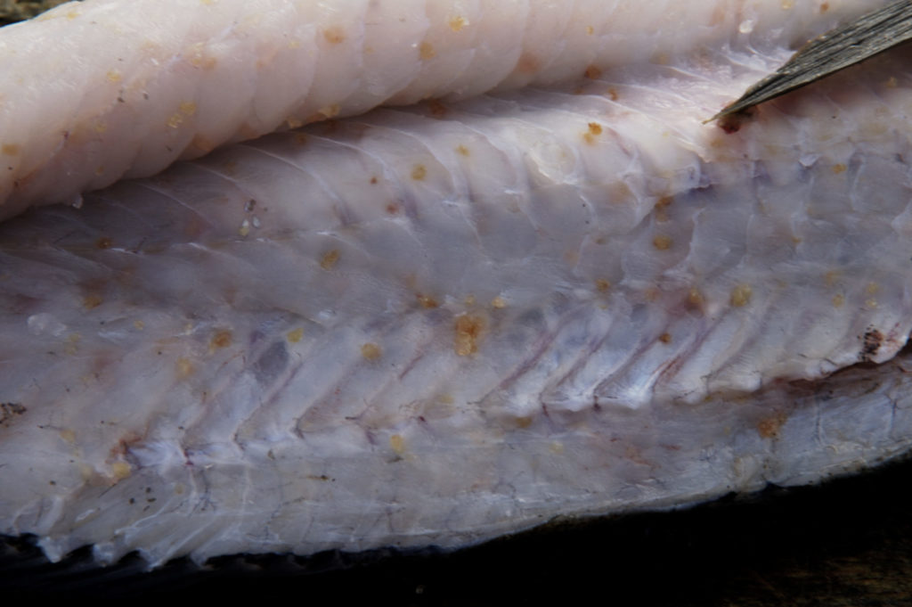 Dieser Pollack ist hochgradig mit Nematoden verseucht.