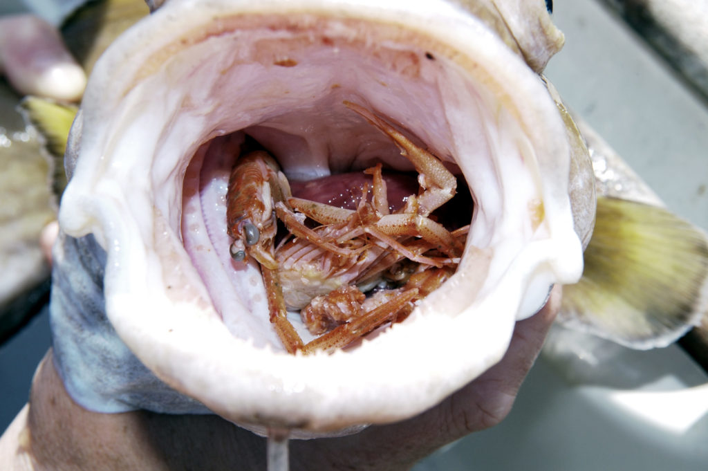Dieser Lumb spuckt kein Meer aus Parasiten aus, sondern hatte sich vor dem Fang den Bauch mit leckeren Tiefseekrebsen voll geschlagen.