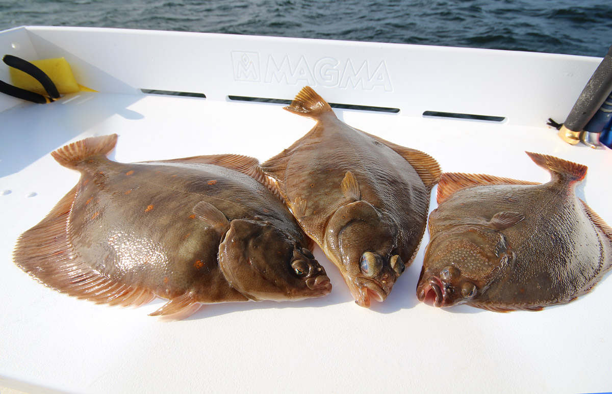 Drei schöne Plattfische sind gefangen. Nun zeigen wir, wie man in kürzester Zeit einen Plattfisch filetiert.