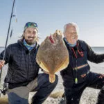 Der Glattbutt (Scophthalmus rhombus) sieht dem Steinbutt täuschend ähnlich, es gibt aber ein paar Unterschiede. So hat der Glattbutt eine eher ovale Form und im Gegensatz zum Steinbutt keine harten Noppen auf der Oberseite. Daher trägt er auch seinen deutschen Namen; ein anderer ist „Kleist“. Außerdem hat dieser Fische eine Sommersprossen-artige Färbung, die ihm die perfekte Tarnung auf sandigen Böden erlaubt. Glattbutte passen auch sehr leicht ihre Farbe dem Untergrund an. So erscheint er auf weißem Sand viel heller als ein Fisch auf dunklem Sandboden. Glattbutte erreichen Größen von bis zu 75 Zentimetern, dabei sind Fische von 30 Zentimeter schon ein toller Fang. Sie können Gewichte von bis zu 7 Kilogramm erreichen.