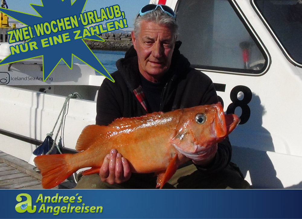 Und das Beste: Im Sommer reisen Sie mit Andrees Angelreisen 2 Wochen nach Island, Sie zahlen jedoch nur eine Woche! Andree`s hat wirklich an alles gedacht, so ist neben einer gemütlichen Unterkunft auch ein großes, sicheres Boot und zusätzlich ein Mietwagen vor Ort im Preis bereits inklusive! Betreut werden die Gäste vor Ort von erfahrenen deutschen Guides.
