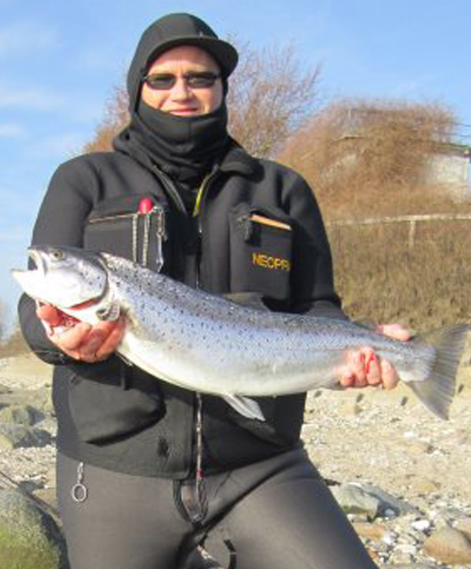 Schon am 4. April hatte es Tobias Peitsch an die Küste gezogen. Der Angler aus Ahrensburg setzte mit einem FX9-Wobbler von Megabass auf einen modernen Köder, den er in Wassertiefen bis einem Meter extrem langsam führte. Immer wieder legte er einige Spinnstops ein. Und die Meerforellen wussten sein Angebot zu schätzen. Tobias konnte sechs Fische landen. Die größte Meerforelle hatte ein Gewicht von 8 Pfund 231 Gramm und eine Länge von 71 Zentimeter. Zwei Wochen später war Uwe Bargmann aus Brake frühmorgens an der Küste. Gegen 6.50 Uhr stieg ein Fisch auf seinen Blinker ein, den er an einer Seatrout Spinnrute von RST führte. Nach heftigem Drill konnte Uwe Bargmann dann einen Silberbarren von 73 Zentimeter Länge landen. Die Waage zeigte eine Gewicht von 8 Pfund 200 Gramm.