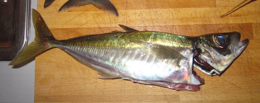 Christian Plumhoff aus Windhagen schrieb uns: „Wir sind eine Gruppe von bis zu acht Angelbegeisterten, die zumindest einmal im Jahr nach Norwegen fahren, um dort eine wunderschöne gemeinsame Woche zu verleben. Bislang besuchten wir die Region um Flekkefjord, Hebnes und Hitra. Vor wenigen Tagen kam ich wieder einmal aus Norwegen (Insel Hidra nahe Flekkefjord) zurück. Wir waren zu viert und erlebten eine unglaublich tolle Woche mit Top-Wetter und gutem Fischfang. Dabei fing ich einen Fisch im Freiwasser, den wir alle nicht zuordnen konnten. Die Besonderheit: Der Fisch besitzt an den Seiten zwei horizontale scharfkantige Seitenlinien und hinter der Bauchflosse am After zwei etwa etwa 5 mm lange spitze Dornen. Nach langwieriger Internet-Recherche glauben wir, dass wir einen Stöcker, eigentlich ein Mittelmeerfisch, vor uns haben. Wir haben gelesen, dass sich dieser Geselle ab und zu verschwimmt und im Nordmeer landet. Als Kutter&Küste-Abo-Leser sind die Fotos vielleicht auch etwas für ihre Rubrik Fremde Fische. Anmerkung der Redaktion: Danke, lieber Christian Plumhoff, für die Anregung. Der Stöcker wird demnächst in unserer Rubrik „Fremde Fische“ ausführlich vorgestellt werden.