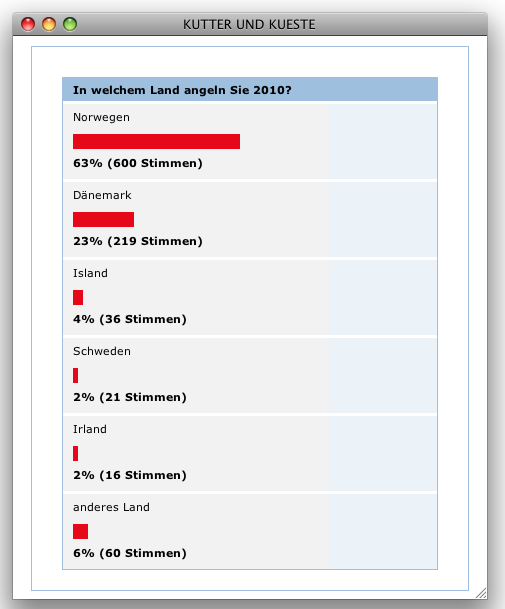 In welchem Land angeln Sie 2010? Diese Frage stellten wir Meeresanglern in unserem großen KUTTER&KÜSTE Voting. Das vorläufige Endergebnis ist ebenso klar wie beeindruckend!