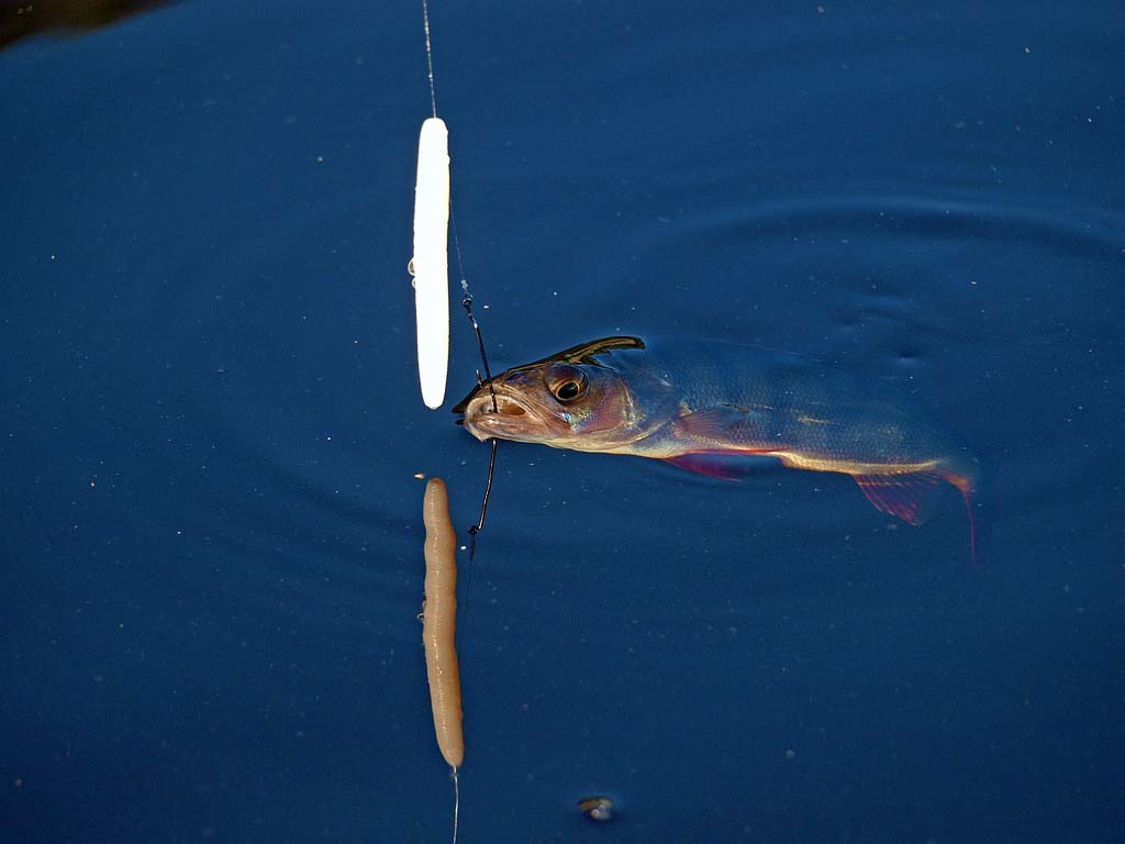 Diese Köder sehen extrem unscheinbar aus, werden aber am Offset-Haken zu wahren Barschfängern. Der Grund: Im Absinken locken diese Köder durch Mikro-Vibrationen, die das Seitenlinienorgan der Fische ansprechen. Außerdem sind die Original-Wormsticks, zum Beispiel die Senkos der Firma Yamamoto, mit einem Lockstoff versehen, dem die Barsche nicht widerstehen können. Wenn man beim Angeln mit Wormsticks also zu lange wartet, haben die Fische den Köder oft komplett geschluckt. Wormsticks lassen sich auf unterschiedliche Art anködern. Entweder fischt man sie in flachem Wasser am Splitshot-Rig, indem man einfach ein kleines Bleischrot 30 Zentimeter vorm Haken aufs Fluorocarbonvorfach klemmt. Oder man bietet sie im Wacky-Stil an. Dazu zieht man einfach einen Wacky-Haken mittig durch den Wurm, sodass die beiden Enden herabhängen. Vor allem im flachen Gewässern bis maximal 5 Meter Tiefe lassen sich diese Barschköder einsetzen. Wormsticks gibt es in allen nur erdenklichen Farben. Bei mir haben sich vor allem die Farben Weiß, Braun und Rosa bewährt. Welche Farbe in einem bestimmten Gewässer fängt, muss man ausprobieren.