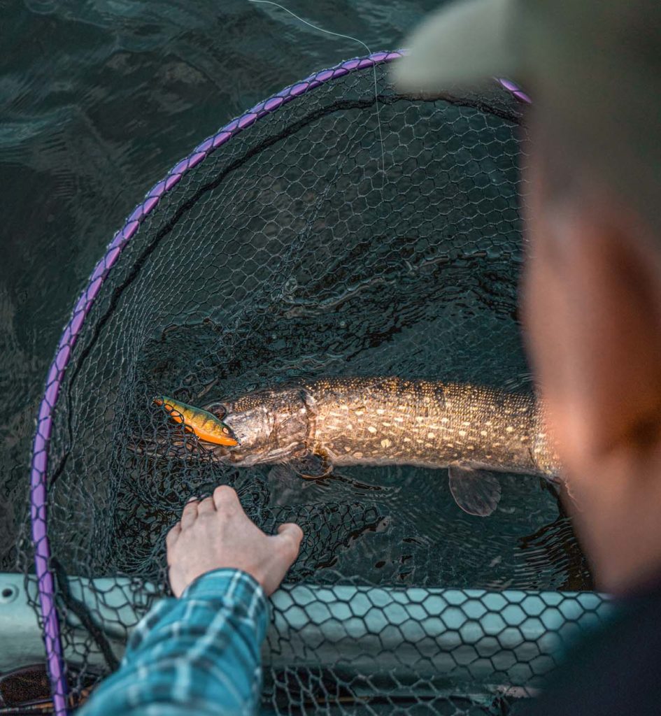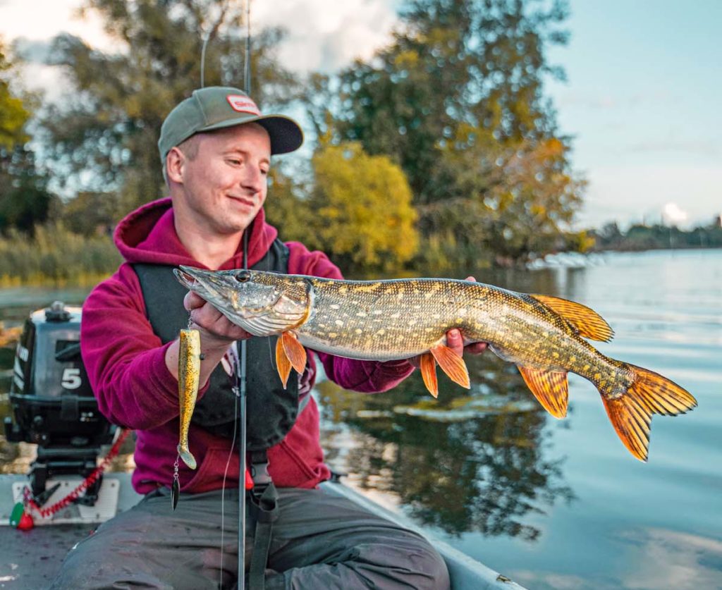 Kein seltenes Bild: Hecht mit Lazy Jerk! „Ghost Gold Perch“ ist die Lieblingsfarbe von Florian, sie fängt bei Sonne und bedecktem Himmel gleichermaßen zuverlässig.