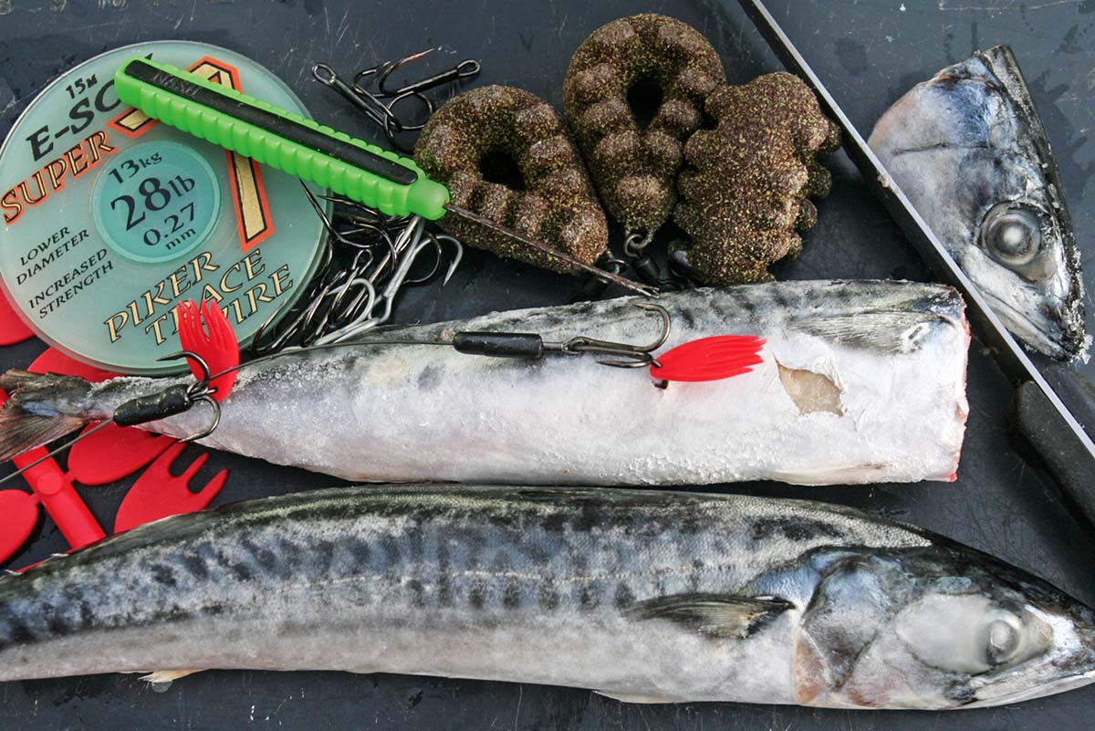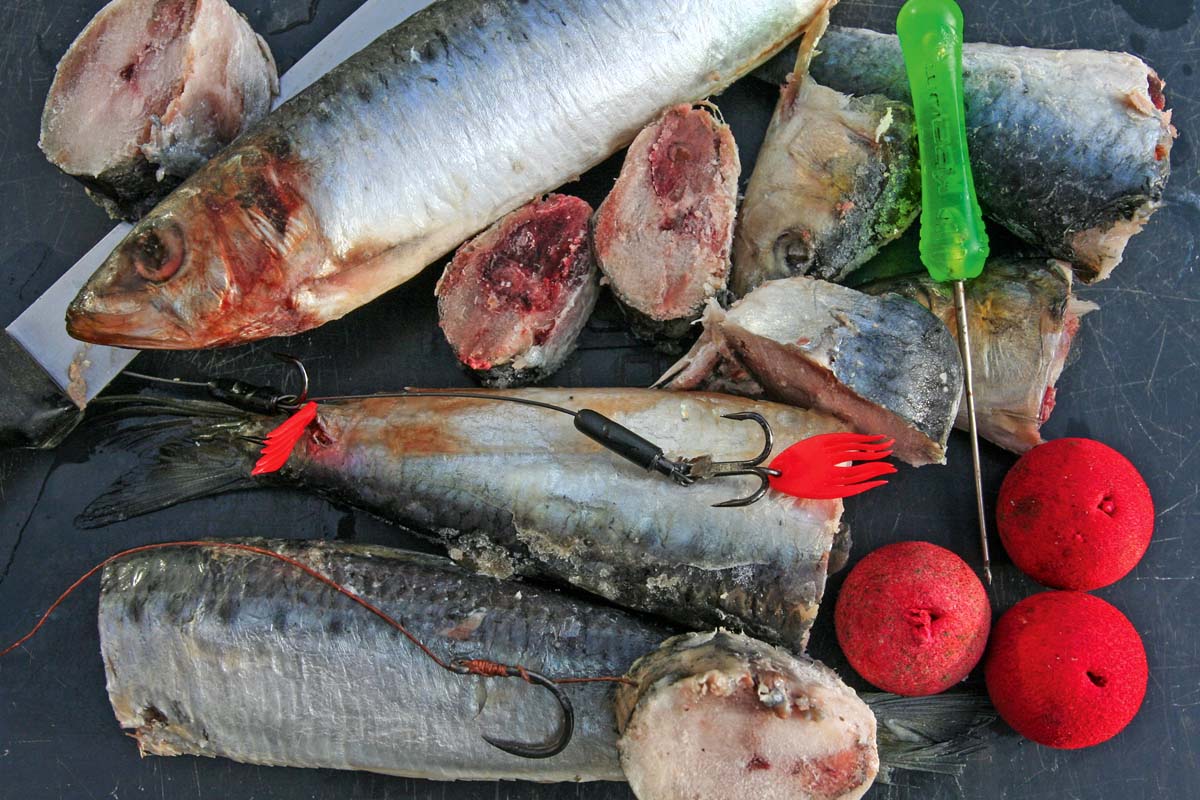Große Makrelen sollte man zerteilen, wobei das Schwanzstück sich besonders zum Fang der ganz kapitalen Hechte eignet. Das liegt wahrscheinlich daran, dass man es sehr weit werfen kann und es am Grund unerwünschten „Mitessern“ viel länger standhält als ein weicher Köderfisch zum Angeln auf Hecht. Durch die zähe Haut lassen sich Makrelen auch für Angeltechniken einsetzen, bei denen Bewegung gefragt ist. Oft befindet sich der Köder sogar noch im Hechtmaul, wenn der Fisch schon gelandet ist. Bei Makrelen verwende ich größerer Haken als bei Sardinen, weil es schwieriger ist, die Haken sicher im Maul des Hechtes zu setzen.