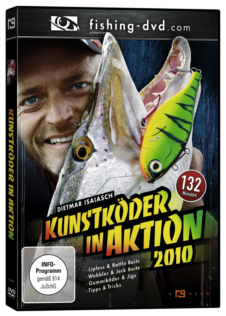 Dietmar Isaiasch zeigt auf seiner neuen DVD Kunstköder in Aktion 2010, wie er mit Jerkbaits, Rattlebaits, Wobblern, Jigs und Gummis angelt. Detailliert erklärt er, worauf es bei der Köderführung ankommt. Neben theoretischen Erklärungen zu den Kunstködern gibt es jede Menge Action. Erleben Sie den Raubfisch-Profi in spannenden Drills mit großen Fischen. Diese DVD liefert einen umfangreichen Überblick zum erfolgreichen Angeln mit modernen Kunstködern. Herausgeber: fishing-dvd.com, Preis: 19,95 Euro Spieldauer: 132 Minuten Infos: www.fishing-dvd.com, www.lureangler.com