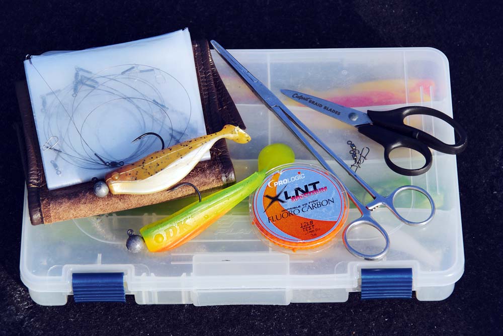 Köder, Vorfächer, Wirbel, Einhänger, Lösezange und Schere – mehr braucht man nicht.