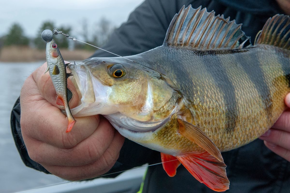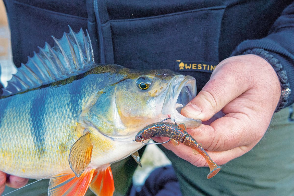Gerade im kalten Wasser, kurz nach dem Winter, kommt es auf eine gute Köderpräsentation an. Schwere Jigköpfe sorgen für kurze und schnelle Absinkphasen, was gerade unter diesen Bedingungen kontraproduktiv ist. Jörgen setzt immer auf möglichst leichte Jigköpfe mit einem Gewicht von 3,5 bis 5 g. Welchen Unterschied das Gewicht des Jigkopfes machen kann, zeigte sich zum Beispiel an einem Wintertag, kurz vor Silvester, als Jörgen 80% der Fische des Tages mit einem 3,5-g-Kopf fing, während sein Angelpartner mit einem 5-g-Kopf das Nachsehen hatte. Das Ganze, obwohl die beiden an denselben Spots mit identischen Ködern fischten.