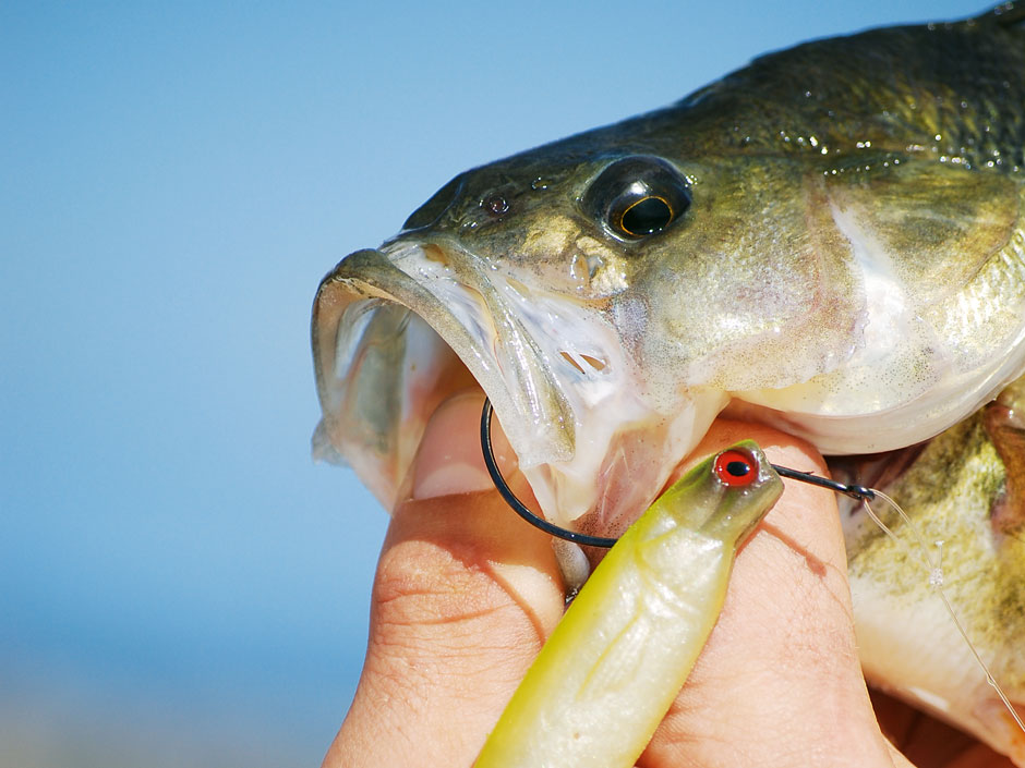 Wenn auf Gummi-Jigs nichts geht, sollte das Texas-Rig eingesetzt werden. Das Klick-Geräusch von Perle und Blei macht müde Barsche munter.