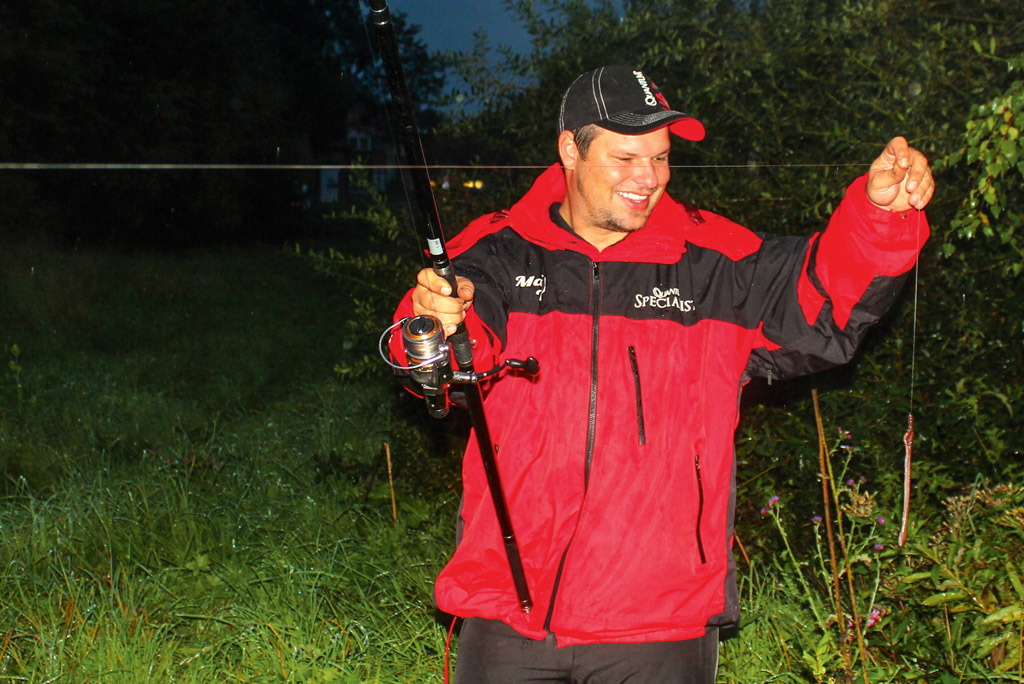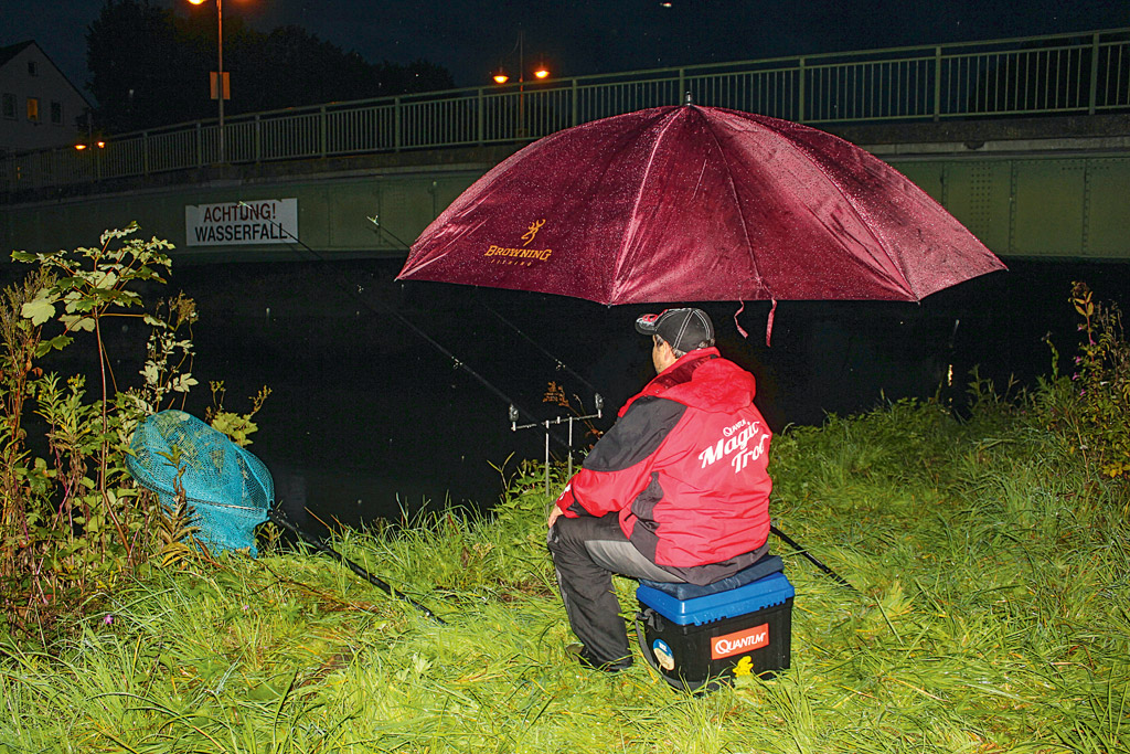 Höchste Aalzeit! Endlich ist es richtig dunkel und der Autor hat seinen Platz vor einem Wehr eingenommen. Foto: Fabian Frenzel