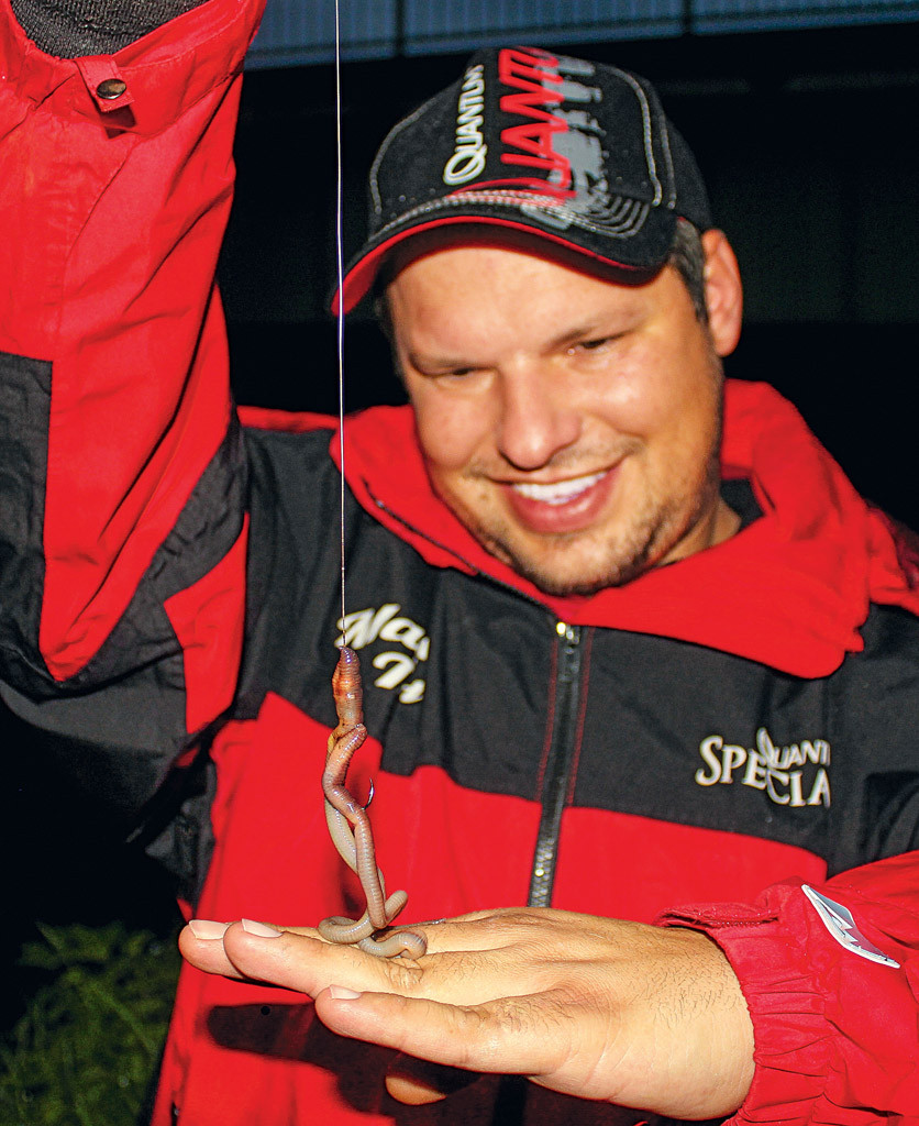 Mein Top-Köder beim Aalangeln im Herbst ist der gute alte Tauwurm. Nicht gedippt, nicht gepimpt – einfach nur Wurm. Jedoch setze ich am liebsten auf selbst gesammelte von der Wiese. Sie sind wesentlich quirliger und fester als ihre großen, kanadischen Verwandten aus der Styroporbox. Um den Aal vielleicht ein letztes Mal zu einem Anbiss zu überzeugen, muss der Köder attraktiv wirken. Deshalb biete ich gerne zwei Würmer auf einem kurzschenkligen Haken an. Dabei verzichte ich allerdings darauf, den Wurm komplett auf den Haken zu ziehen. Fehlbisse lassen sich dadurch zwar verringern, jedoch ist ein schlapp hängender Wurm nicht annähernd so ansprechend, wie zwei frische, quirlige Würmchen.