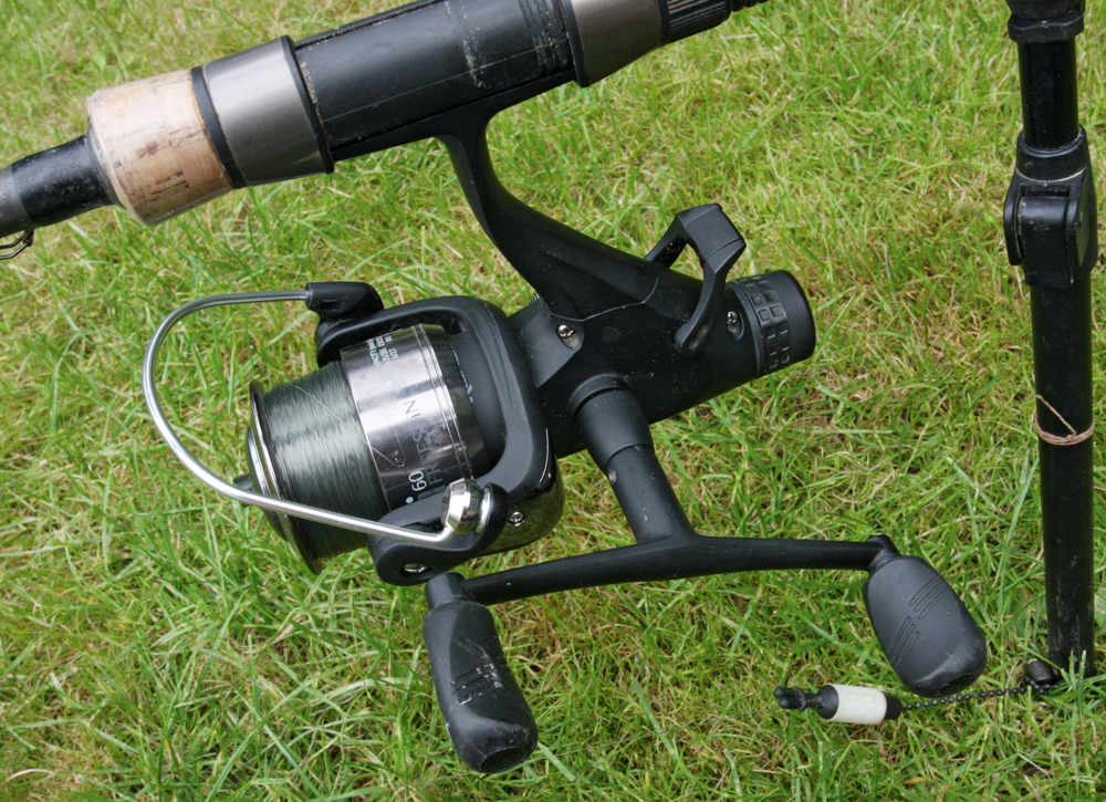 Damit die Aale beim Biss keinen Widerstand spüren und frei abziehen können, fischt Duncan Charman mit offenem Rollenbügel. Die Schnur wird in einen Einhänge-Bissanzeiger eingeclipt.