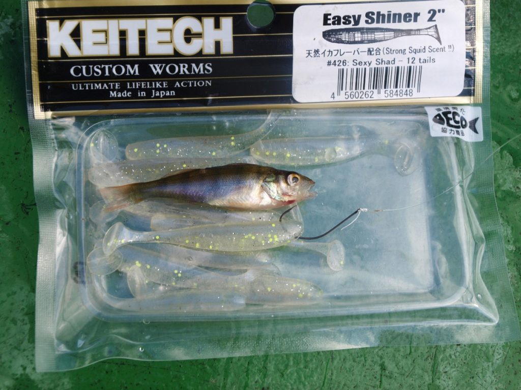 Weil ich in meinen Vereinsgewässern vor allem die Uferzonen befische, wo ich auch mit Hängern und Abrissen rechnen muss, verwende ich das Bleischrot oft als günstigen Bleikopf-Chebu-Ersatz, indem ich es direkt auf dem Vorfach bis vor den Haken verschiebe. Auf diese Weise lassen sich kleine Kunstköder am Splitshot-Rig anbieten! Ich fische zum Beispiel gerne den nur 5,4 Zentimeter kurzen „Easy Shiner“ von Keitech oder auch andere Köder dieser Größe. Durch das kleine Bleischrot als Gewicht können die Weichplastikköder ihren Lauf voll entfalten und werden von den Barschen regelrecht eingeatmet! Das funktioniert allerdings nur, wenn die Köder nur einmal am Kopf eingehakt werden.
