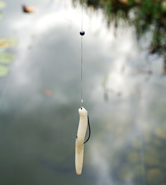 Sobald die Barschangelei nach dem Laichen der gestreiften Räuber Ende Mai wieder besser wird, verwende ich auch gerne kleine Köderfische oder einen halben Tauwurm an der Splitshot-Montage. Dabei wird der Tauwurm nur einmal mit dem feindrahtigen 2er Haken am Kopf durchstochen. Auf diese Weise angeködert, wird der Köder ausgeworfen, wobei man darauf achten muss, dass der Wurf nicht zu hart ausfällt. Sonst fischt man nämlich ohne Köder, weil dieser bei zu heftigen Würfen vom Haken fliegt.