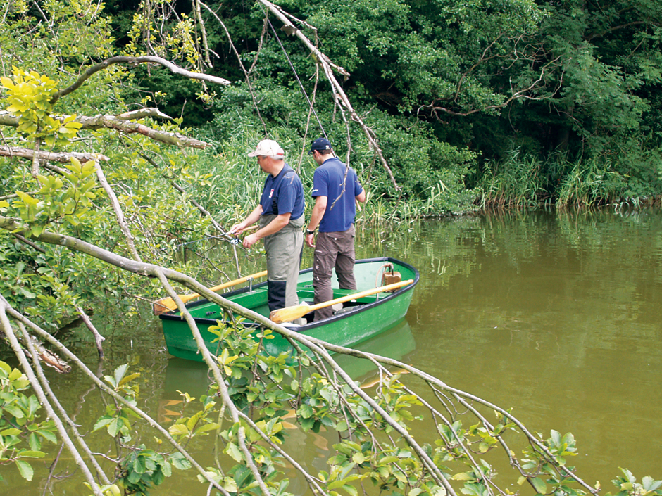 Wenn ein Köder schon nicht alle Fische, die ihn sehen, zum Zubeißen verführt, kann man ihn doch getrost und ganz gezielt dazu einsetzen, Fische aufzufinden. Die amerikanischen Raubfisch-Profis sprechen auch tatsächlich von so genannten Searchbaits, also Suchködern, mit denen sie die Fische vor allem erst einmal finden wollen. Das wollen wir heute auch versuchen. Dazu haben wir uns ein Vereinsgewässer ausgewählt, in dem die Fische oft und intensiv beangelt werden. Schon am Bootssteg hatten wir ja den Eindruck gewonnen, dass die Fische hier nicht auf alles hereinfallen.