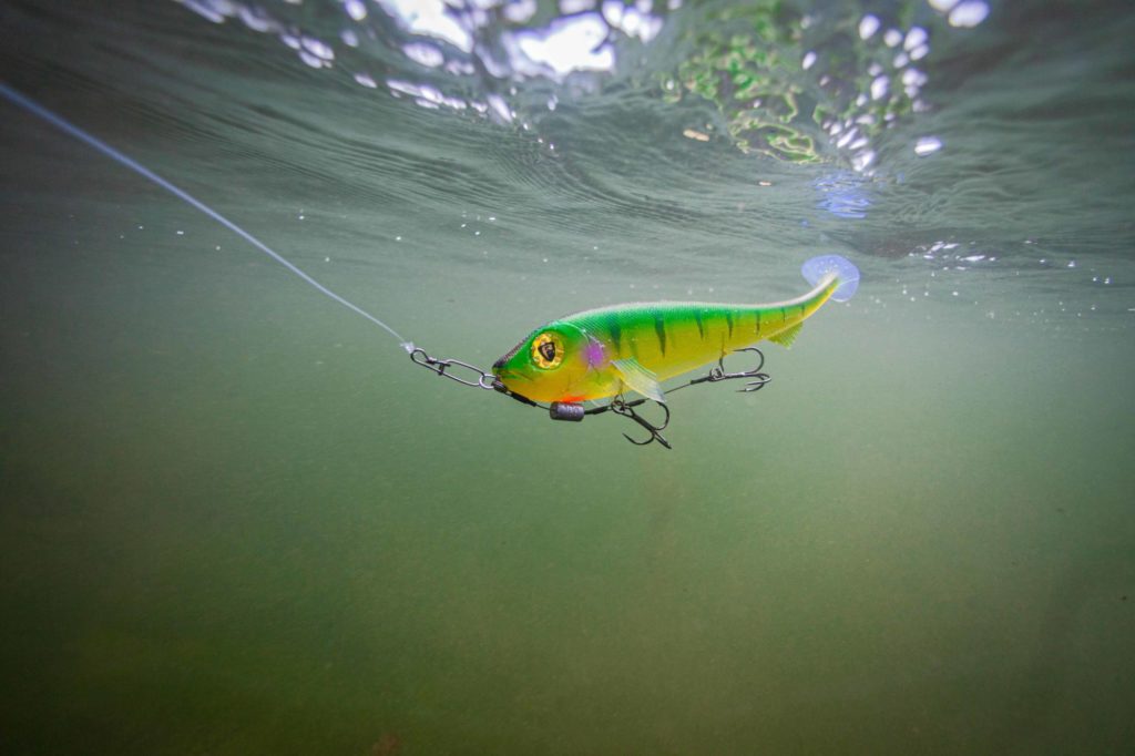 Große Hechte, großer Hunger, große Köder. Diesen Satz hast du vielleicht schon gehört – aber ich stimme ihm voll und ganz zu. Wenn Du einmal das Maul eines Meterhechts gesehen hast, kannst Du dir vorstellen, welche Beute dort hineinpassen kann. Ich verwende deshalb Köder, die es für einen Großhecht lohnenswert machen, Energie in einen Angriff zu investieren. Große Köder heben sich zudem im offenen Wasser besser ab und sind aus größerer Entfernung sichtbar als solche mit kleiner Silhouette. Ich setze auf Köder, die sowohl durch ihr Volumen als auch durch Vibration auffallen. Selbstvertrauen in den Köder ist entscheidend – oft habe ich nur wenige Köder in der Box, manche Tage wechsle ich gar nicht und werfe den gleichen Köder den ganzen Tag – voll überzeugt.