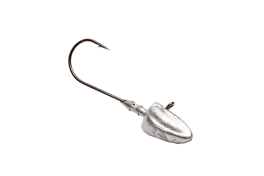 Der Football-Jigkopf ist so etwas wie eine Zwischenform, denn er vereint einige Eigenschaften von Rundkopf und Erie-Jig. Seine Form bietet mehr Stabilität als der Rundkopf und verursacht weniger Kippbewegungen des Gummiköders. An Tagen, an denen der Gummifisch nur ganz wenig bewegt werden muss, ist das ideal. Auch am Grund kippt ein Football-Jig nicht so leicht um, wie ein Rundkopf.