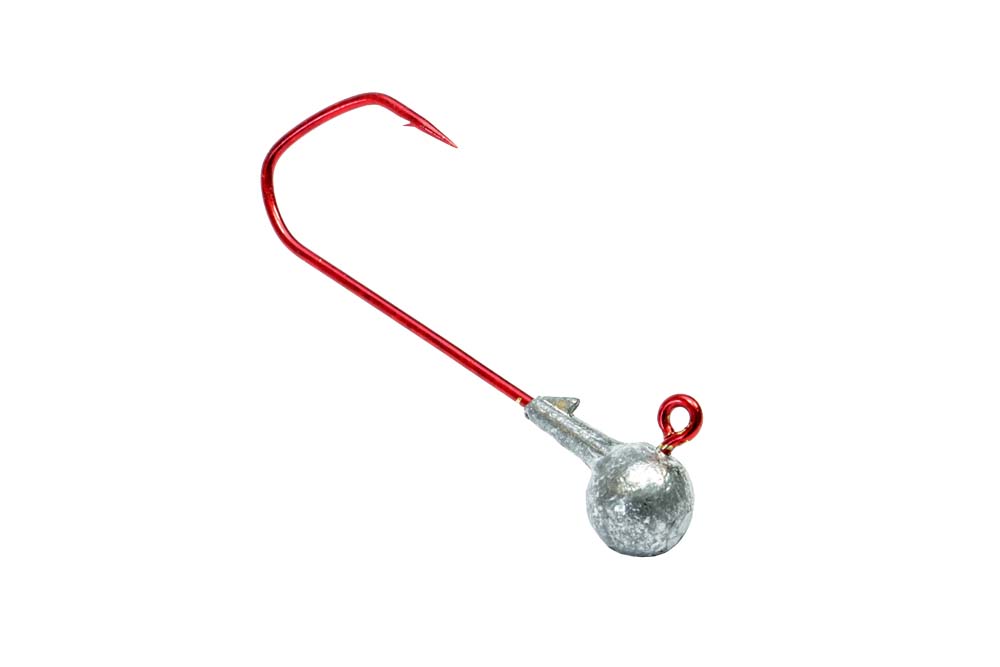 Der Rundkopf-Jig liefert im Wasser den geringsten Widerstand. Somit sinkt er an der losen Schnur am schnellsten ab und kann beim Vertikalangeln am besten unter dem Boot gehalten werden. Während der Schwimmphase und immer wenn der Shad auf dem Boden abgestellt wird, kippt er leicht, da der Kopf rund ist und in der Horizontalen keine Stabilität bietet. Bei der Köderform lassen sich sowohl Action-Gummis als auch No-Action-Gummis hervorragend präsentieren. Für Creature Baits wie etwa Gummikrebse ist er jedoch weniger gut geeignet, weil er am Grund auf die Seite kippt. Der Rundkopf wird von vielen Angelgeräteherstellern angeboten und ist deswegen in jedem Angelgeschäft erhältlich. Wichtig ist jedoch, beim Einkauf auf die Haken-Qualität zu achten. Leider werden nämlich von diesem Jigkopf-Typ auch Billig-Modelle mit minderwertigen Haken vertrieben.