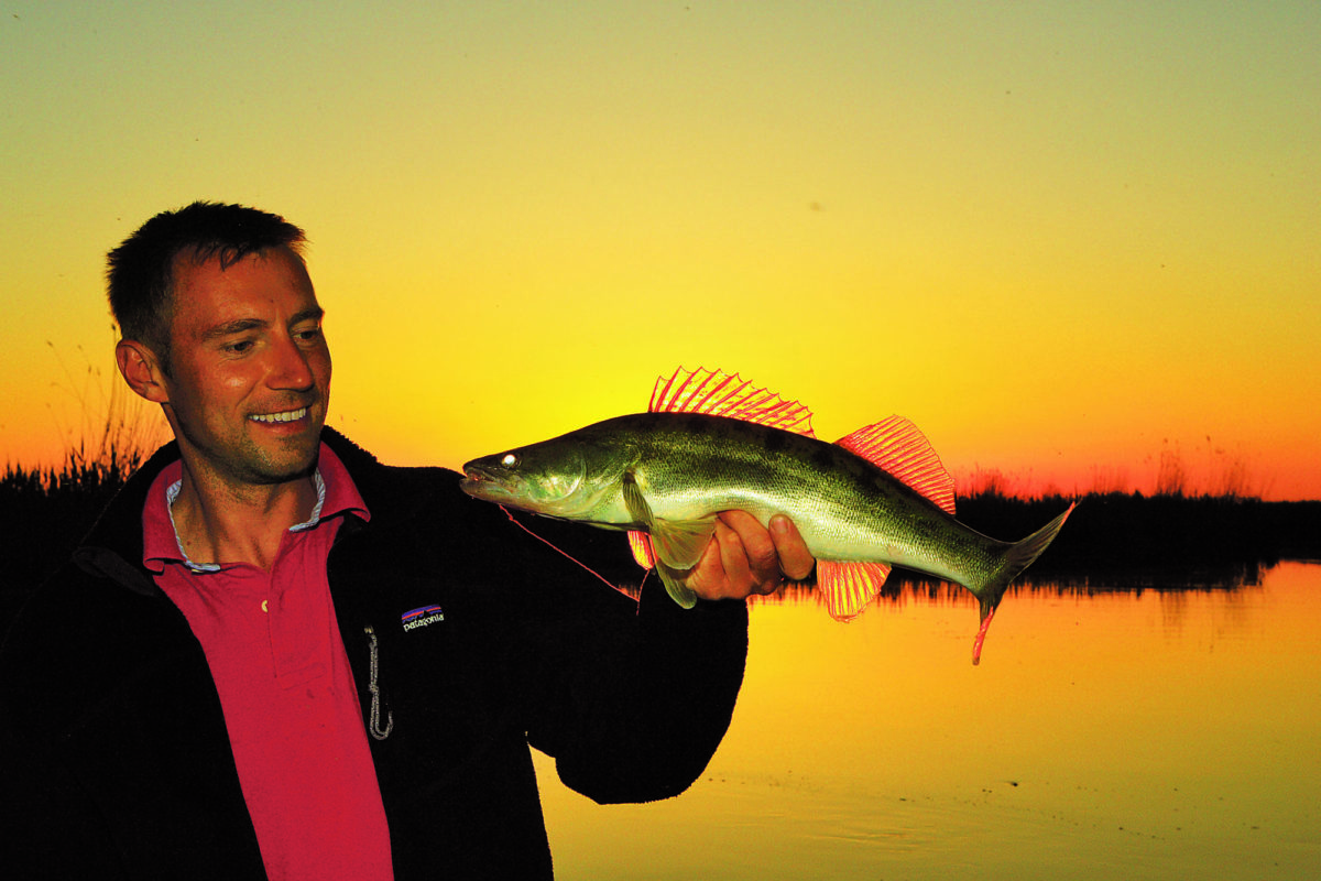 Es sind zwar vor allem Barsche, die sich jetzt zwischen den Brutfischen den Bauch vollschlagen. Doch auch Hechte geben sich ein Stelldichein, zusammen mit Zandern. Die Zander lieben übrigens Flachwasserzonen, die unmittelbar an einer Scharkante zum Tiefen liegen. Sie kommen früh, wenn es noch fast dunkel ist, und sie gehen auch früh, weil sie das Sonnenlicht scheuen.