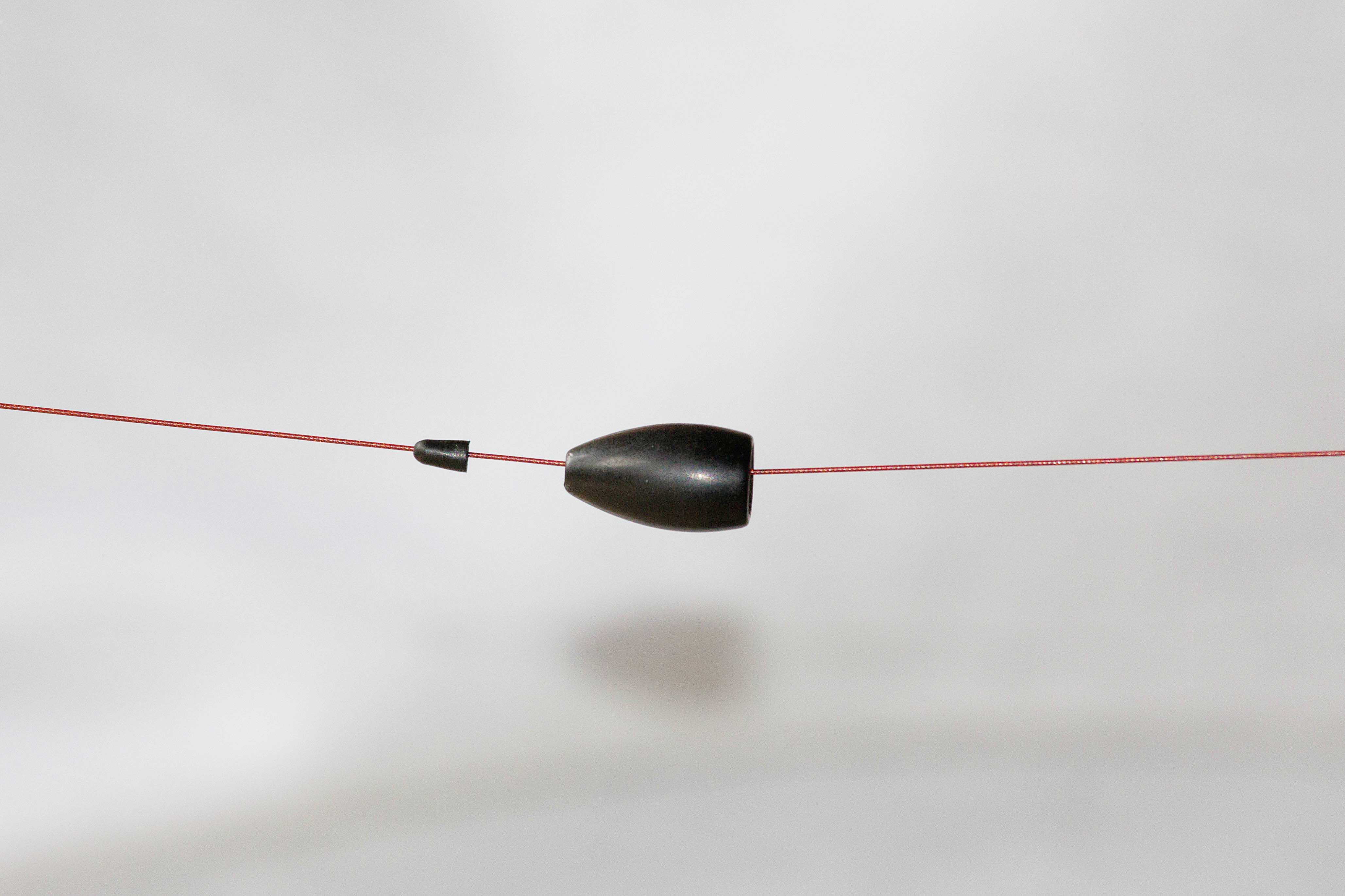- Auf das Vorfach (bevorzugt aus Fluorocarbon) wird als erstes ein geschossförmiges Blei aufgezogen.