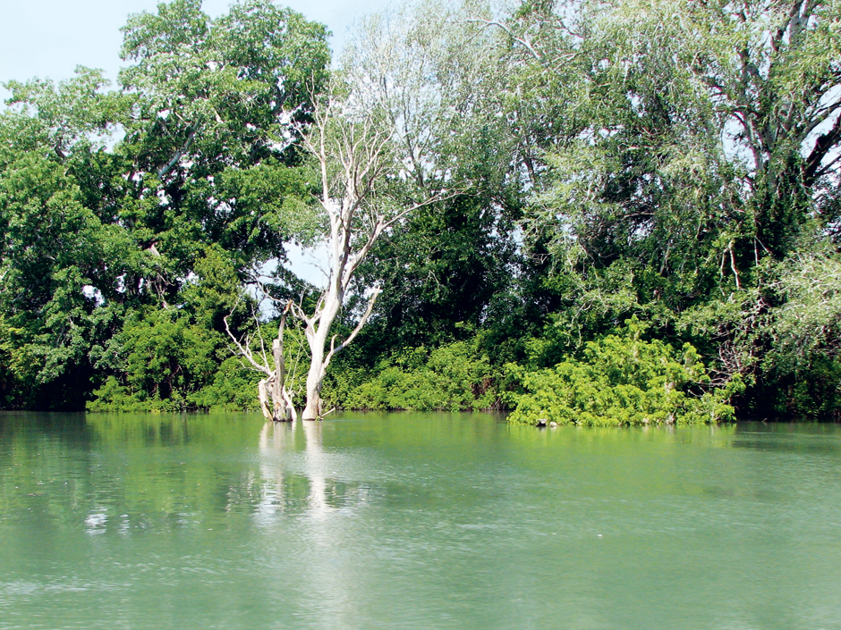 - breite Flussabschnitte mit relativ geringer Wassertiefe.