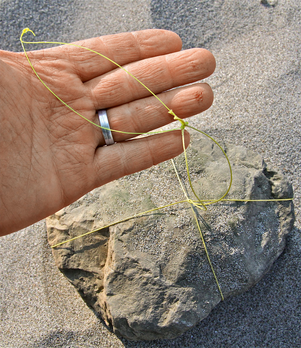 - Ein Stein mit Abriss-Schnur eignet sich besser zum Halten am Grund als ein schweres Blei.