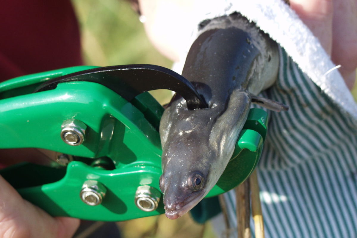 Die Aalzange hilft, damit Aale nach dem Versorgen auch wirklich ruhig sind.