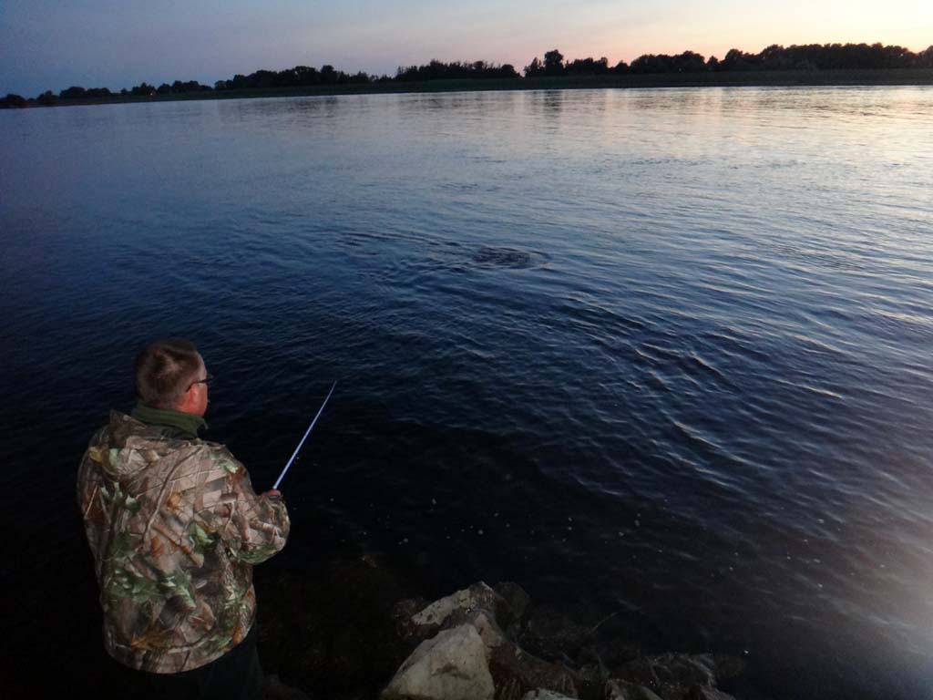 Beim Zanderangeln in der Nacht solltet Ihr im Gegensatz zum Tag flache Stellen aufsuchen. Mit flach meine ich Stellen mit einer Tiefe von einem Meter und noch flacher. Denn im Schutz der Dunkelheit kommen die Räuber in die seichten Gewässerbereiche, um dort nach den Kleinfischen zu jagen. Ich habe es schon erlebt, dass einen halben Meter vor meinen Füßen ein Zander auf den Köder eingestiegen ist. Ein Erlebnis, dass man nicht mehr so schnell vergisst.