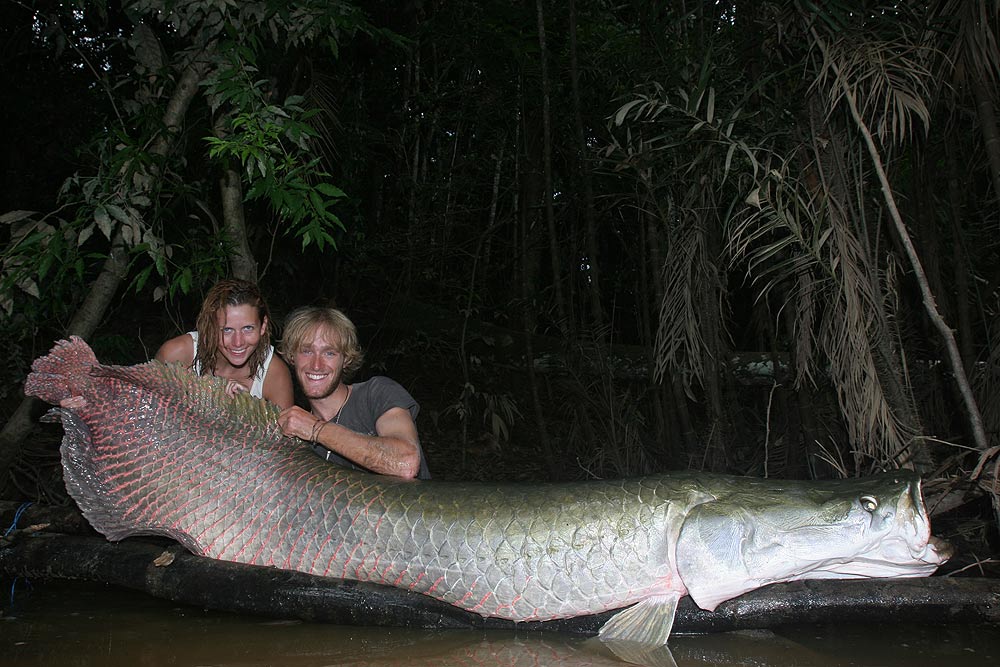 Wieder einmal ein Beweis für Kompetenz und Professionalität: BLINKER-Mitarbeiter Jakub Vagner gelang der Fang seines Lebens mitten im Amazonas-Dschungel. Vier Fische über 100 Kilo, einer davon neuer Weltrekord. Der tschechische Meisterangler dürfte BLINKER-Abonnenten gut bekannt sein: Mit dem August-Heft bekamen sie eine Video-DVD mit einem Movie über Jakubs Karpfen-Abenteuer in Italien. Abo lohnt sich eben… Der Arapaima gigas – auch Pirarucu genannt – gehört zu den absolut größten Süßwasser-Raubfischen der Welt. Er wird über zweieinhalb Meter lang und bis 200 Kilo schwer, aber Exemplare über zwei Meter sind sehr selten.