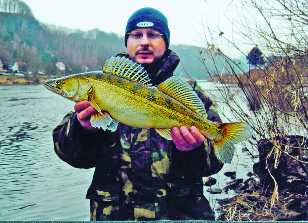 Frank Focke mit einem 60 cm langen und wohl genährten Winterzander aus der Elbe.